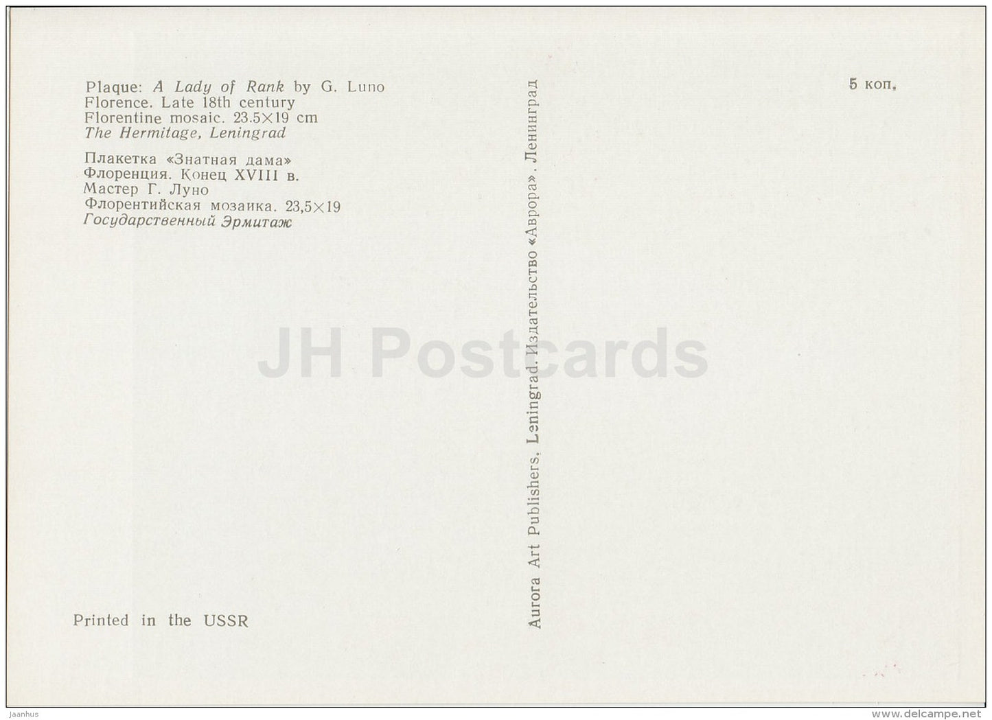 Plaque , A Lady of Rank by G. Luno - Florentine Mosaic - Italian art - 1974 - Russia USSR - unused