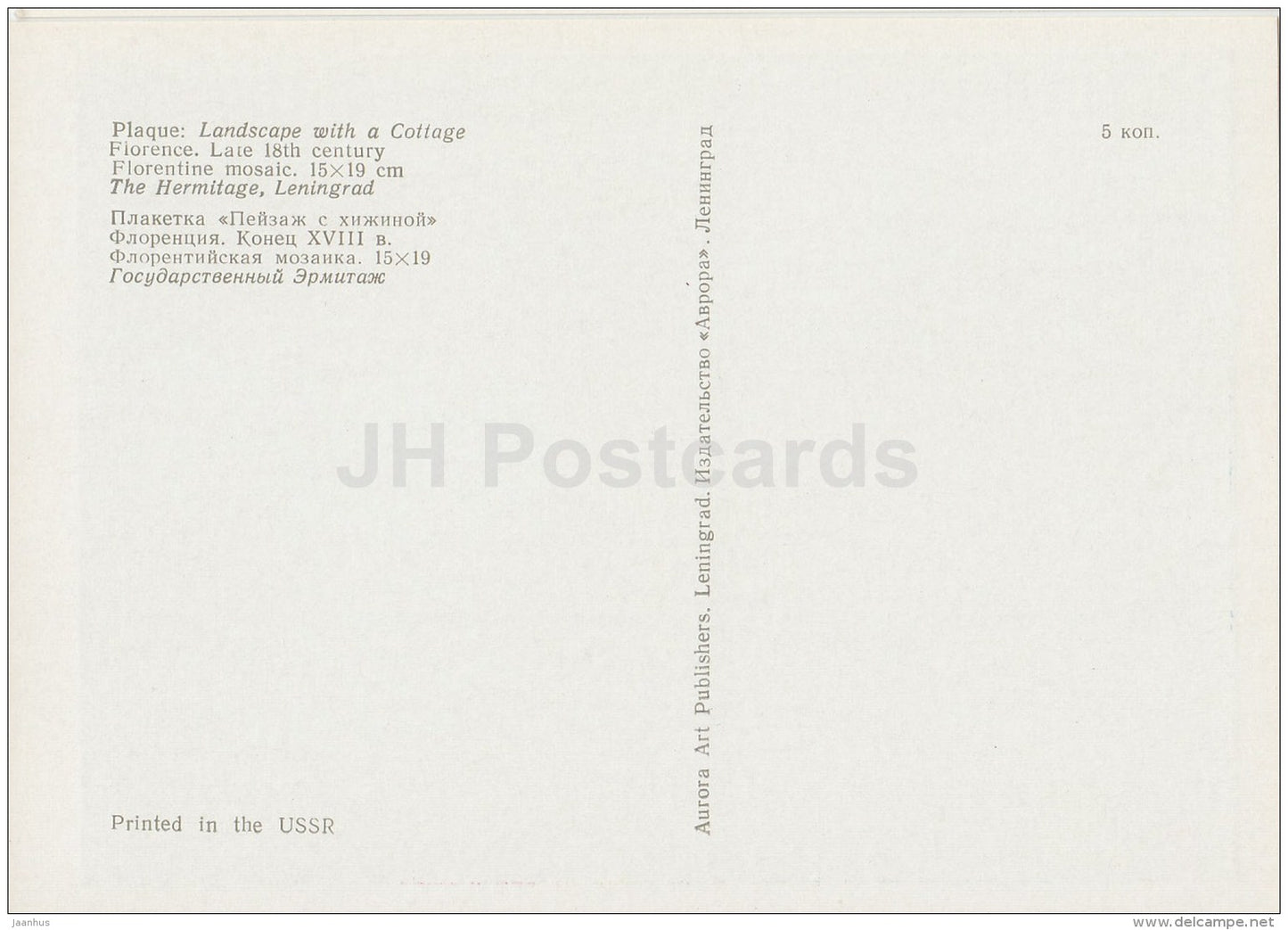 Plaque , Landscape with a Cottage - Florentine Mosaic - Italian art - 1974 - Russia USSR - unused