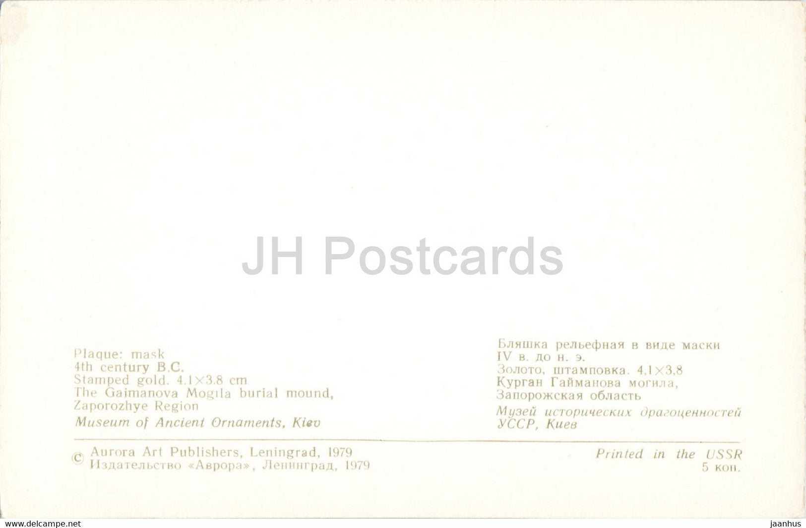 Plaque - Mask - Gaimanova Mogila - Goldwork of 6th-2nd centuries BC - Ancient Art - 1979 - Russia USSR - unused