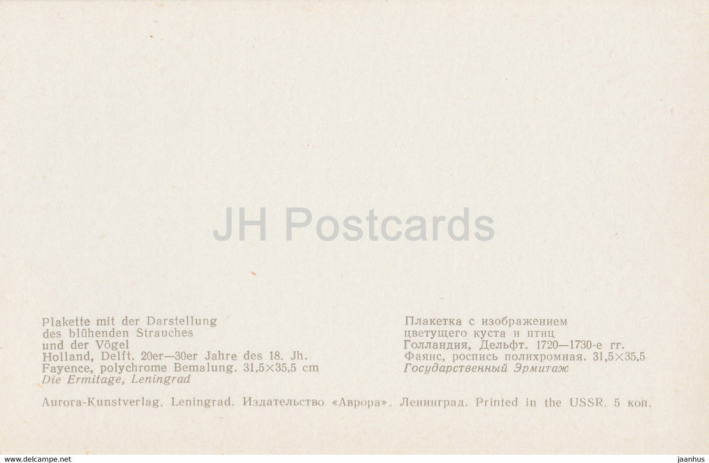 Plaque with the image of a flowering bush and birds - 1 - Faience - Delftware - 1974 - Russia USSR - unused