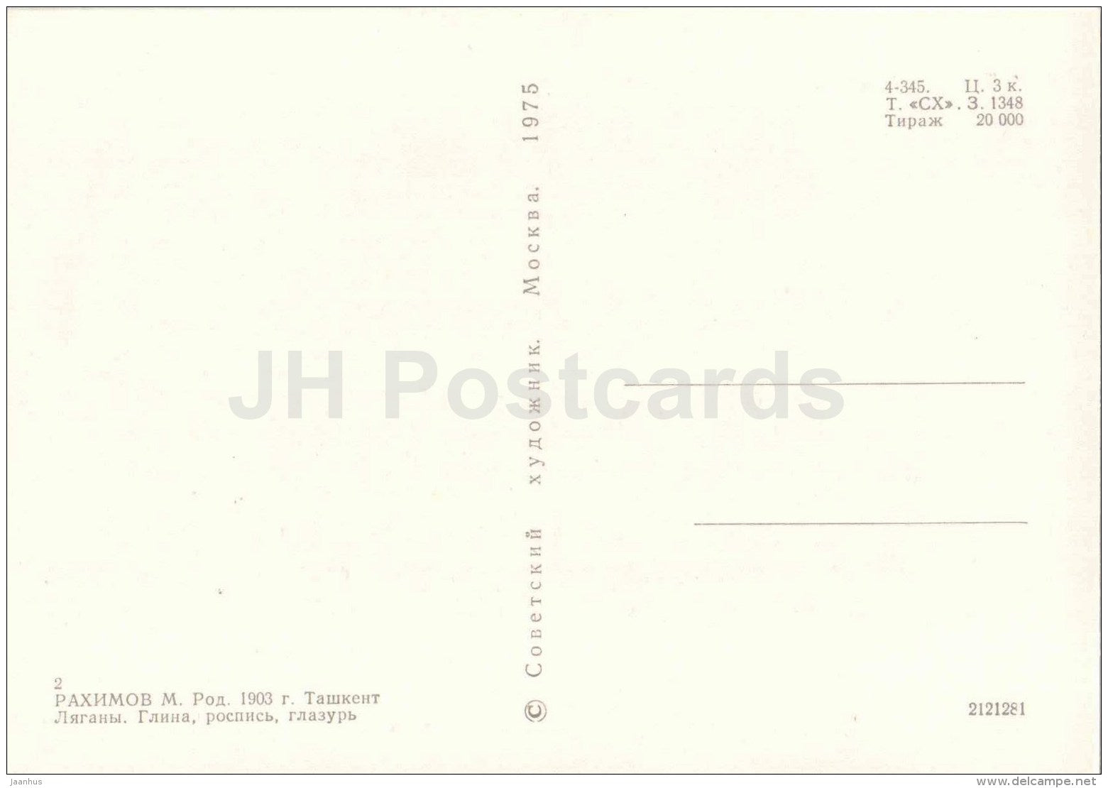 Plate Dish by M. Rakhimov - clay - folk art of Uzbekistan - uzbek - 1975 - Russia USSR - unused