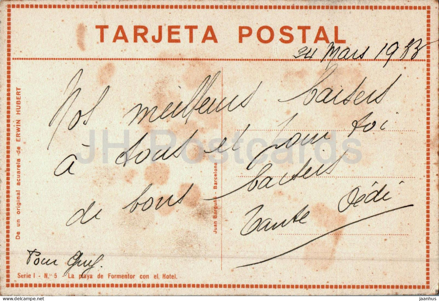 Playa de Formentor con el Hotel - painting by Erwin Hubert - old postcard - 5 - Spain - used