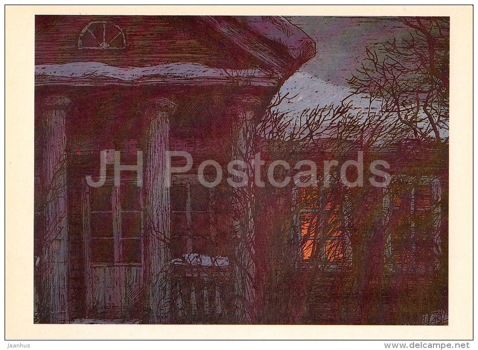 Poet´s House . Evening - Mikhaylovskoye - illustration by L. Korsakov - Russia USSR - 1981 - unused