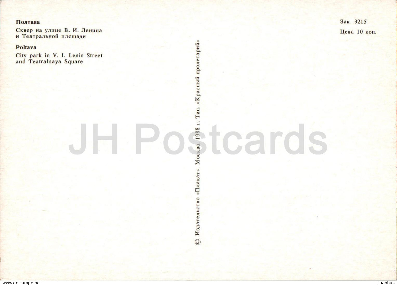 Poltava - City park in Lenin street and Teatralnaya Square - 1988 - Ukraine USSR - unused