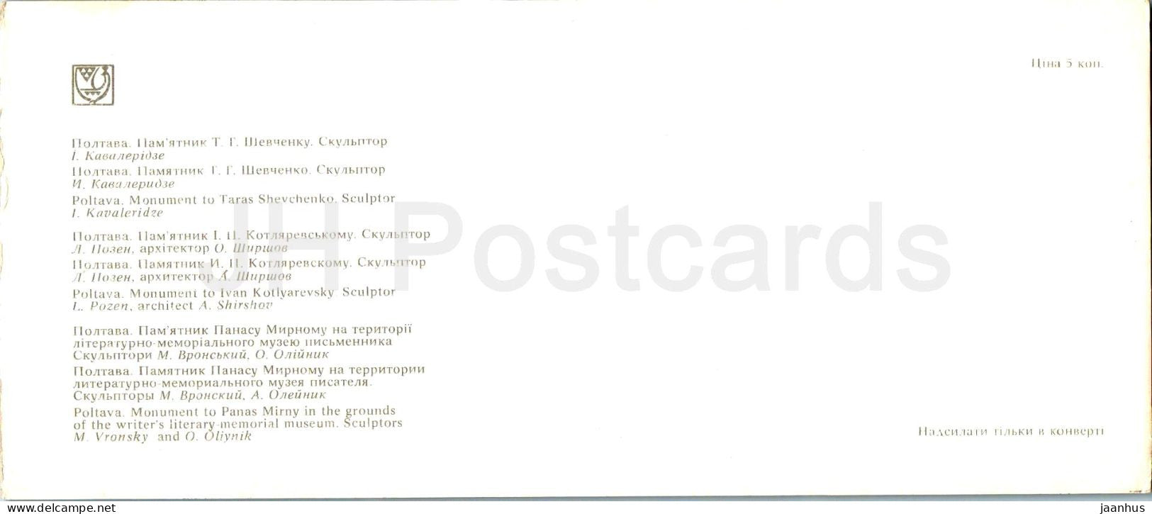 Poltava - monument to Ukrainian poet Shevchenko - writer Ivan Kotliarevsky - Panas Myrny - 1981 - Ukraine USSR - unused