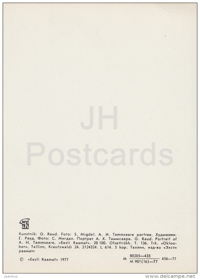 portrait of A. H. Tammsaare by G. Raud - Estonian writer A. H. Tammsaare - 1977 - Estonia USSR - unused