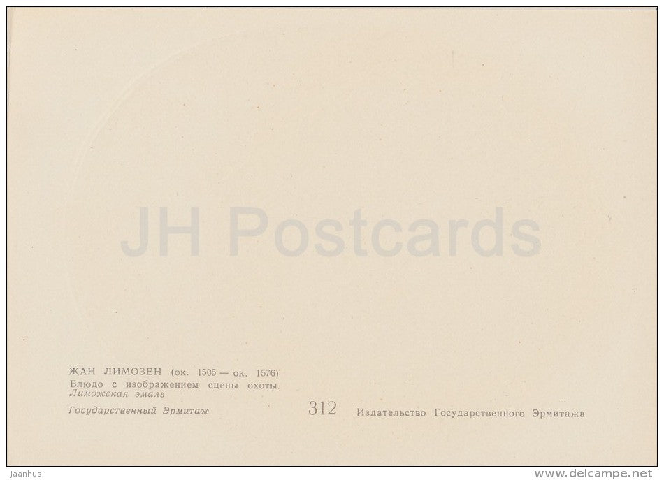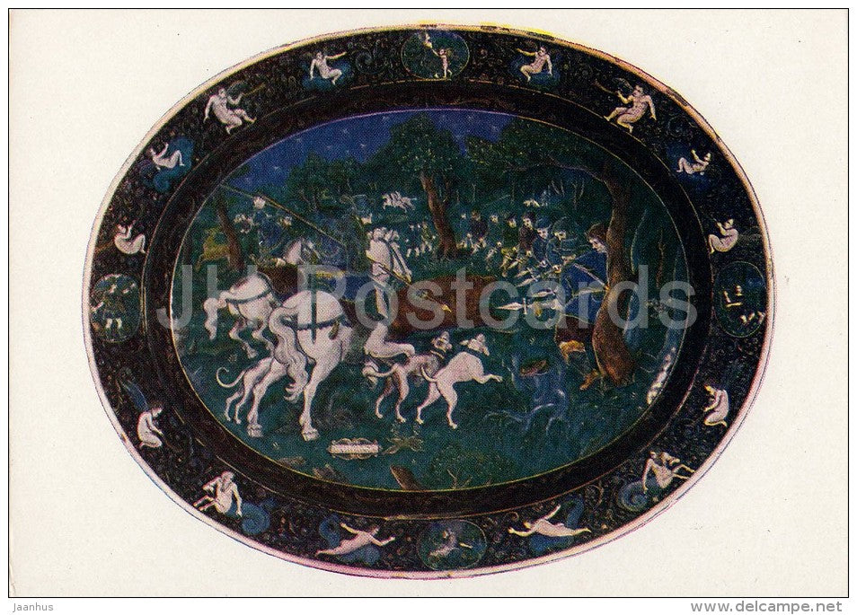 pottery - Jean Limosin - Dish with a picture of a hunting scene - French art - 1963 - Russia USSR - unused
