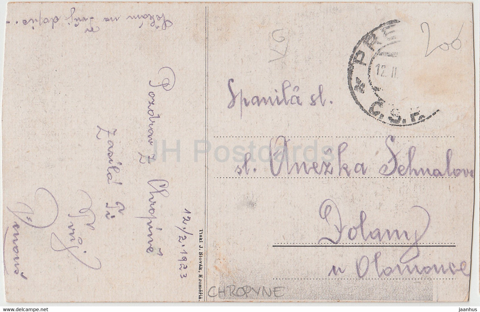 Pozdrav z Chropine - Chopryne - Zamek - Skola - old postcard - 1923 - Czech Republic - used