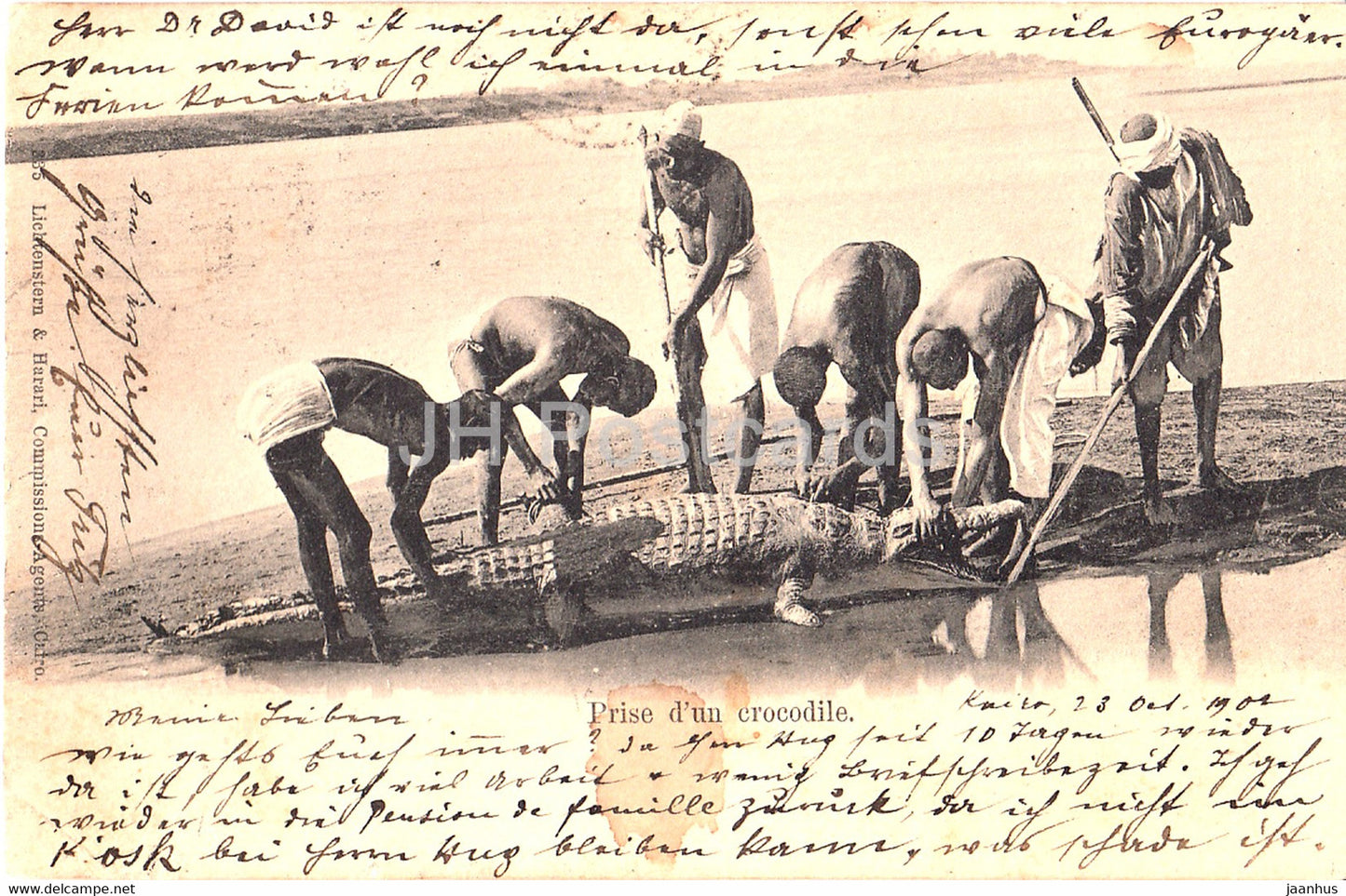 Prise d'un crocodile - animals - 335 - old postcard - 1902 - Egypt - used