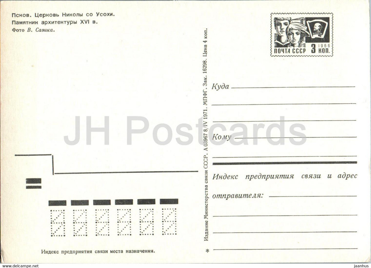 Pskov - Church of St. Nicholas from Usokhi - postal stationery - 1971 - Russia USSR - unused