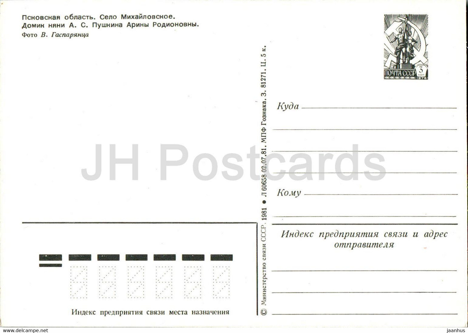 Pskov region - Mikhaylovskoye - Nanny's House - 1 - postal stationery - 1981 - Russia USSR - unused