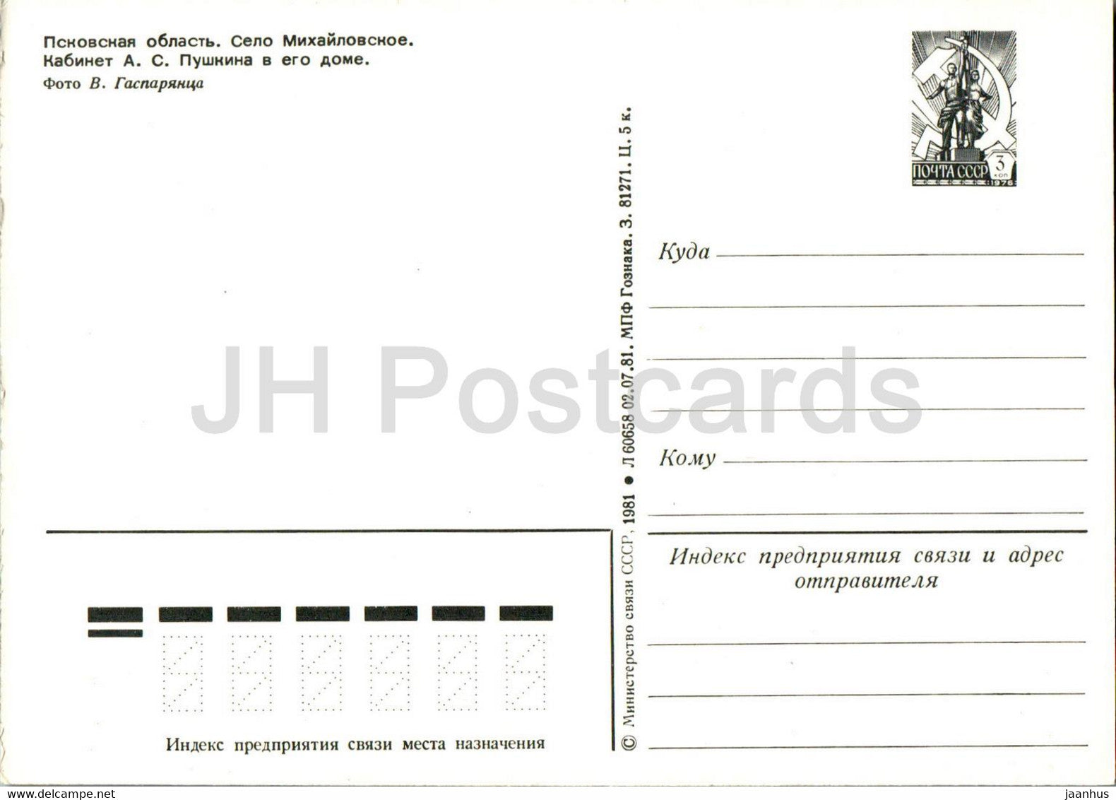 Pskov region - Mikhaylovskoye - Pushkin cabinet - museum - 1 - postal stationery - 1981 - Russia USSR - unused