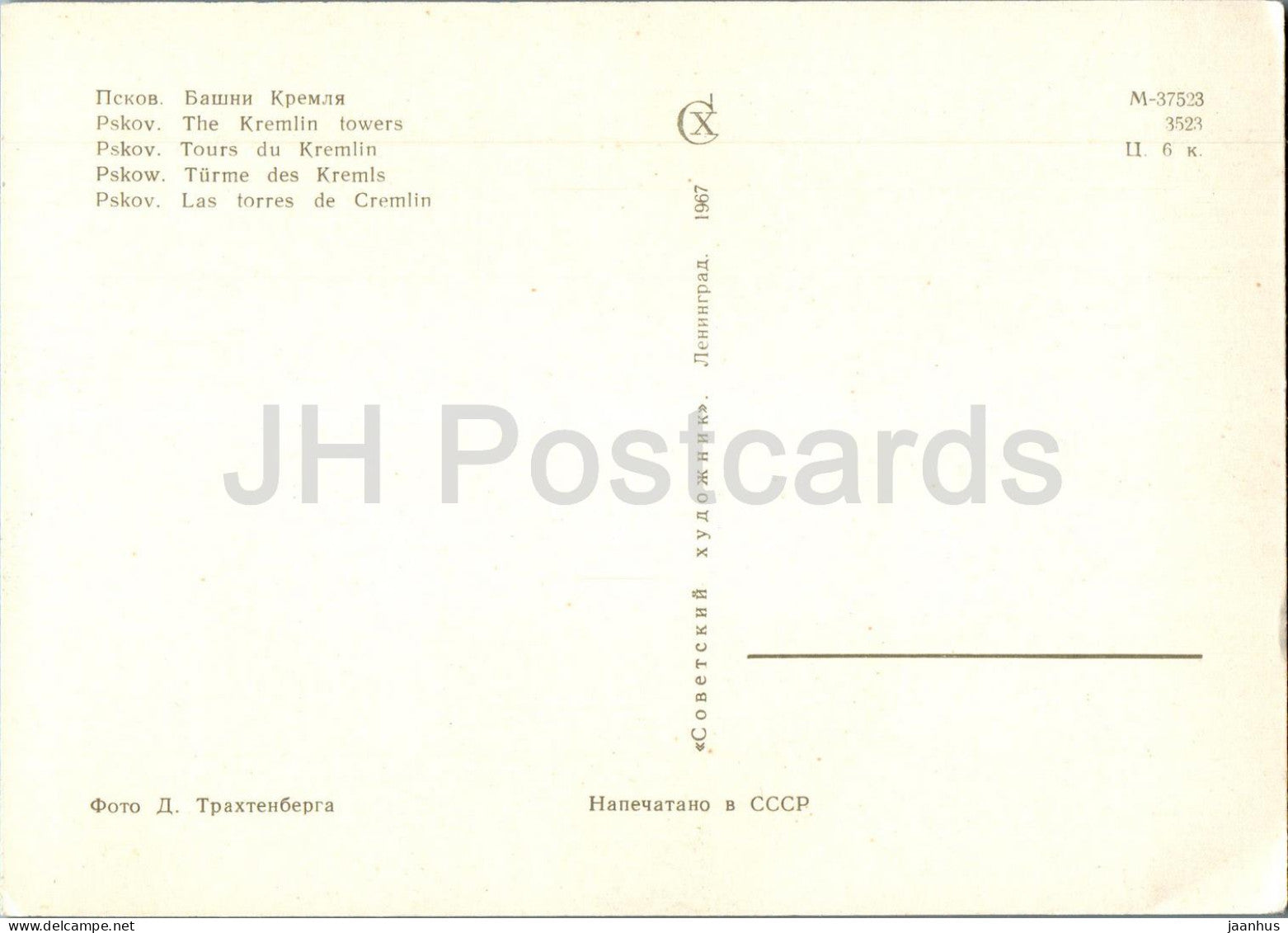 Pskov - The Kremlin Towers - 1967 - Russia USSR - unused