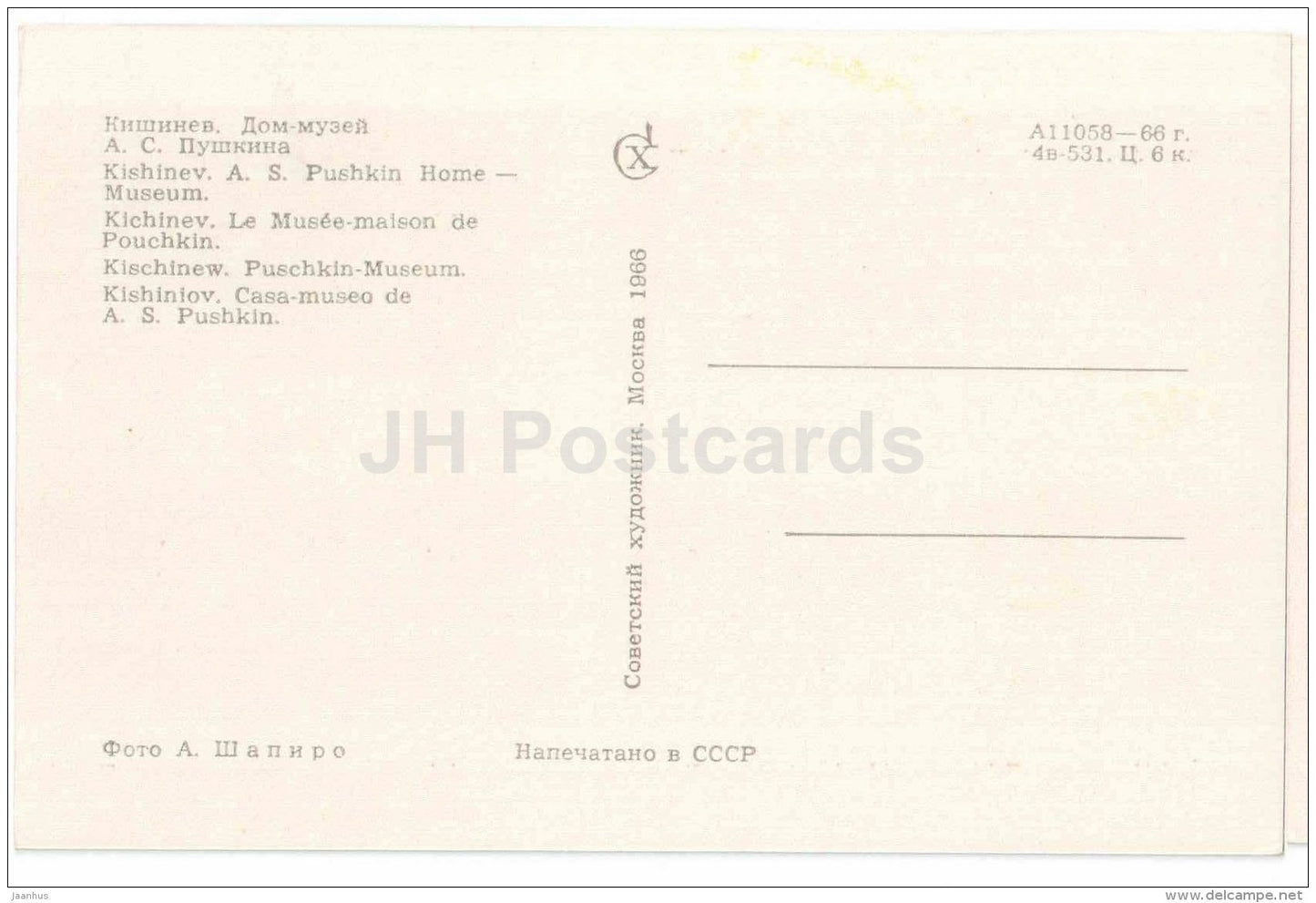 Pushkin Home Museum - Chisinau - Kishinev - Views of Moldova - 1966 - Moldova USSR - unused