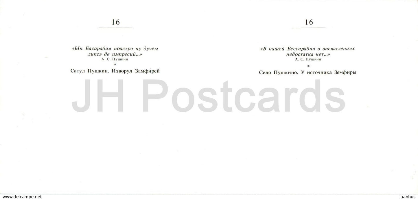 Pushkin Places - Dolna - at the source of Zemfira - 1981 - Moldova USSR - unused
