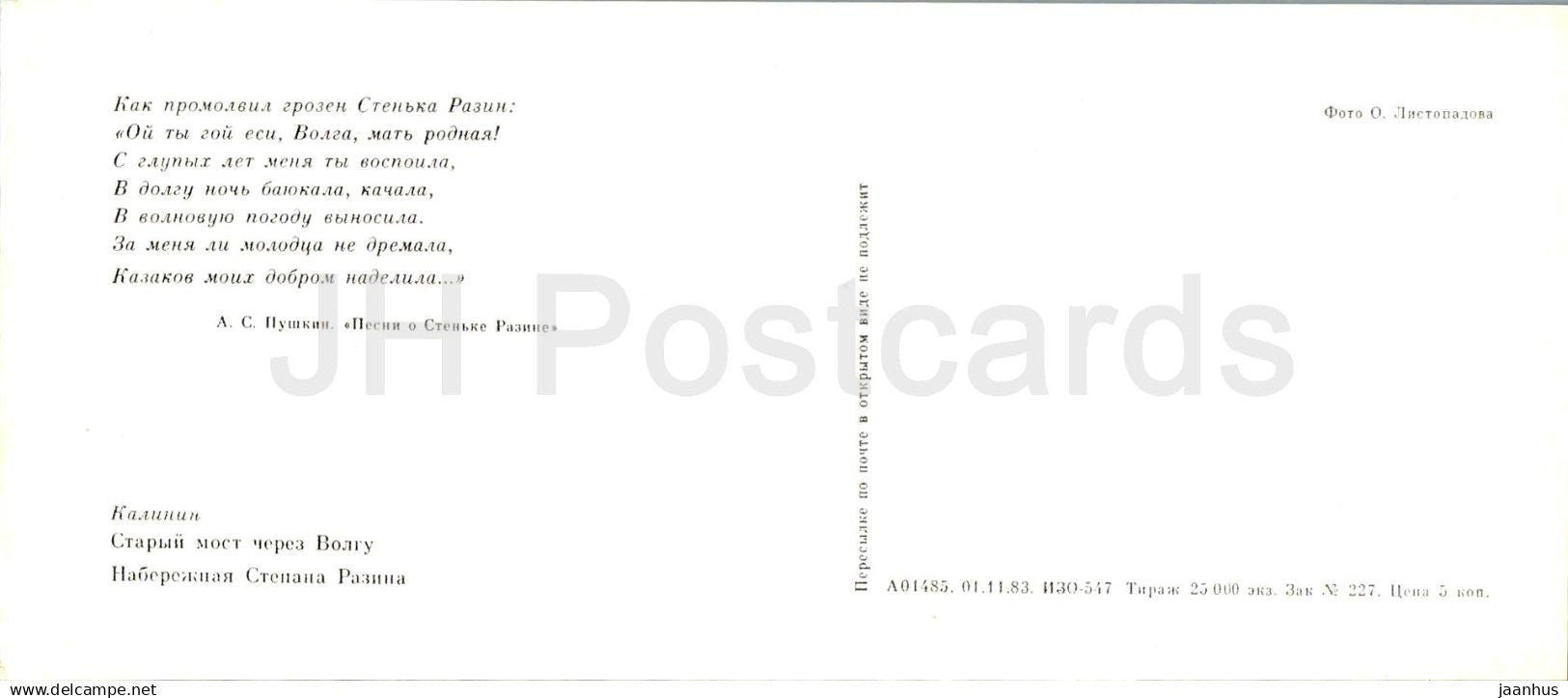 Pushkin places of the Upper Volga river - Tver - old bridge over Volga river - embankment - 1983 - Russia USSR - unused