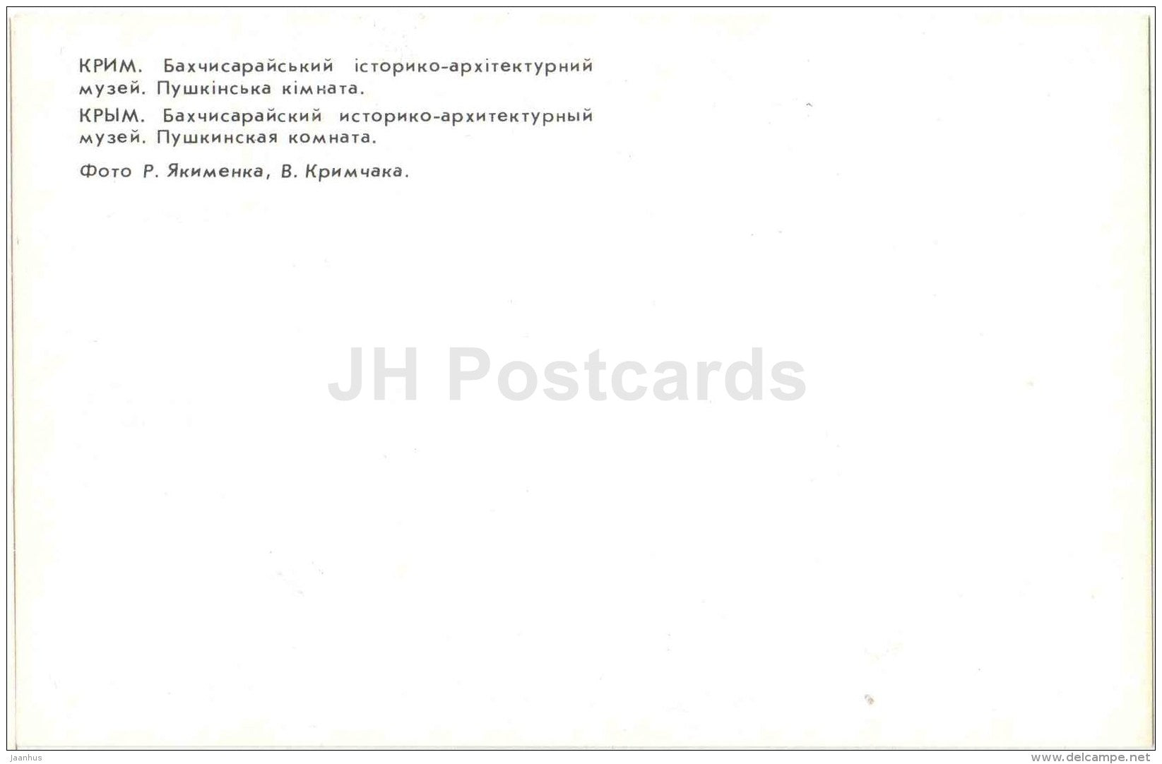 Pushkin Room - museum - Bakhchisaray - Crimea - 1980 - Ukraine USSR - unused