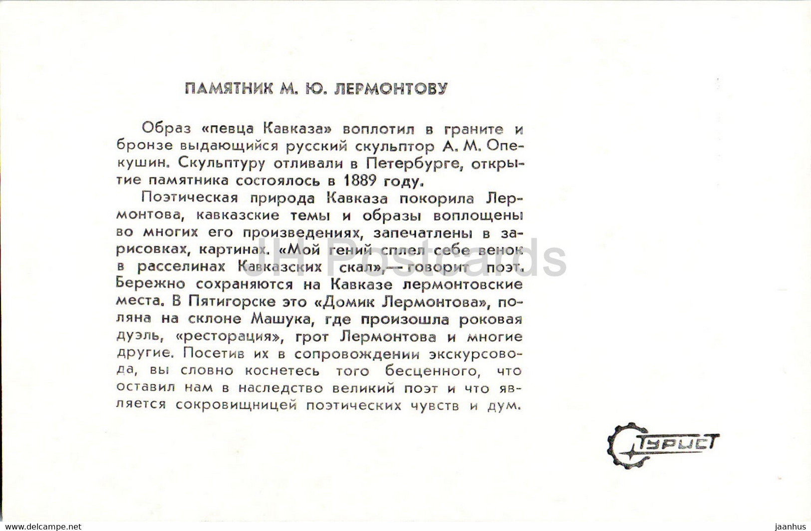 Pyatigorsk - monument to Russian poet Lermontov - 1982 - Russia USSR - unused