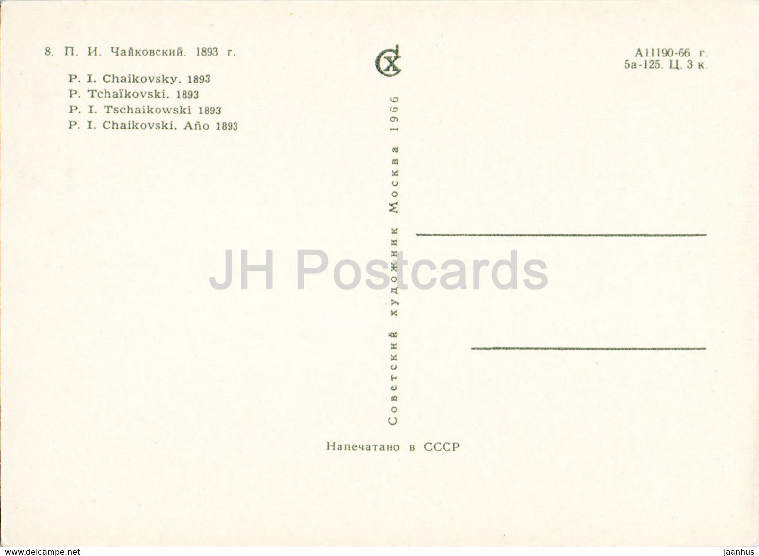 Pyotr Tchaikovsky - 1893 - famous people - 1966 - Russia USSR - unused