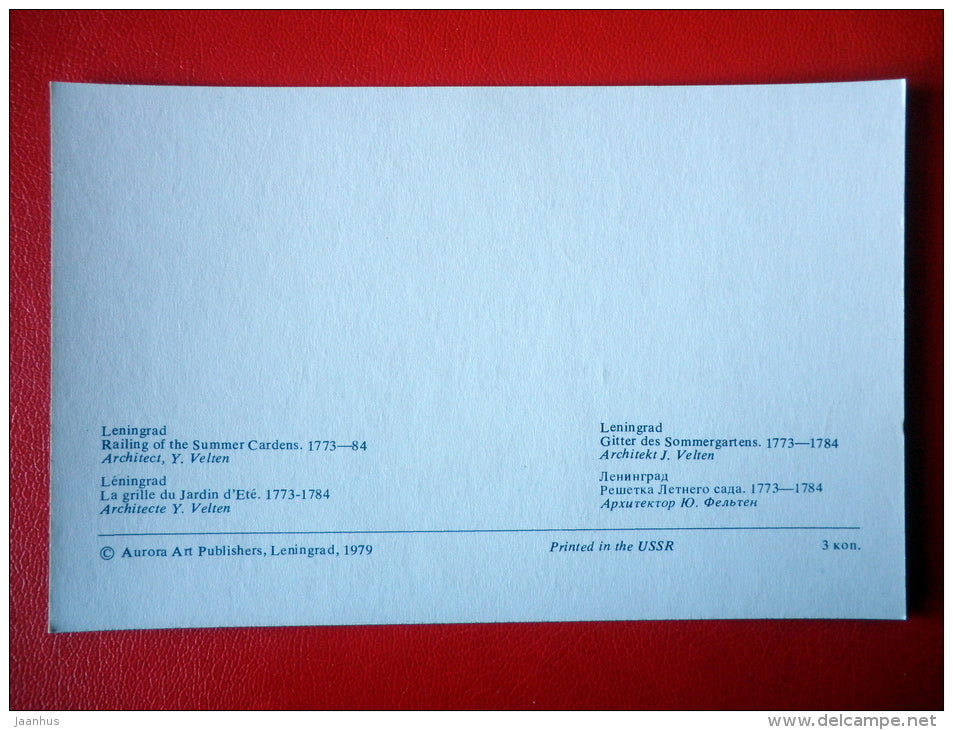 Railing of the Summer Gardens , 1773-84 - Leningrad - St. Petersburg - 1979 - Russia USSR - unused