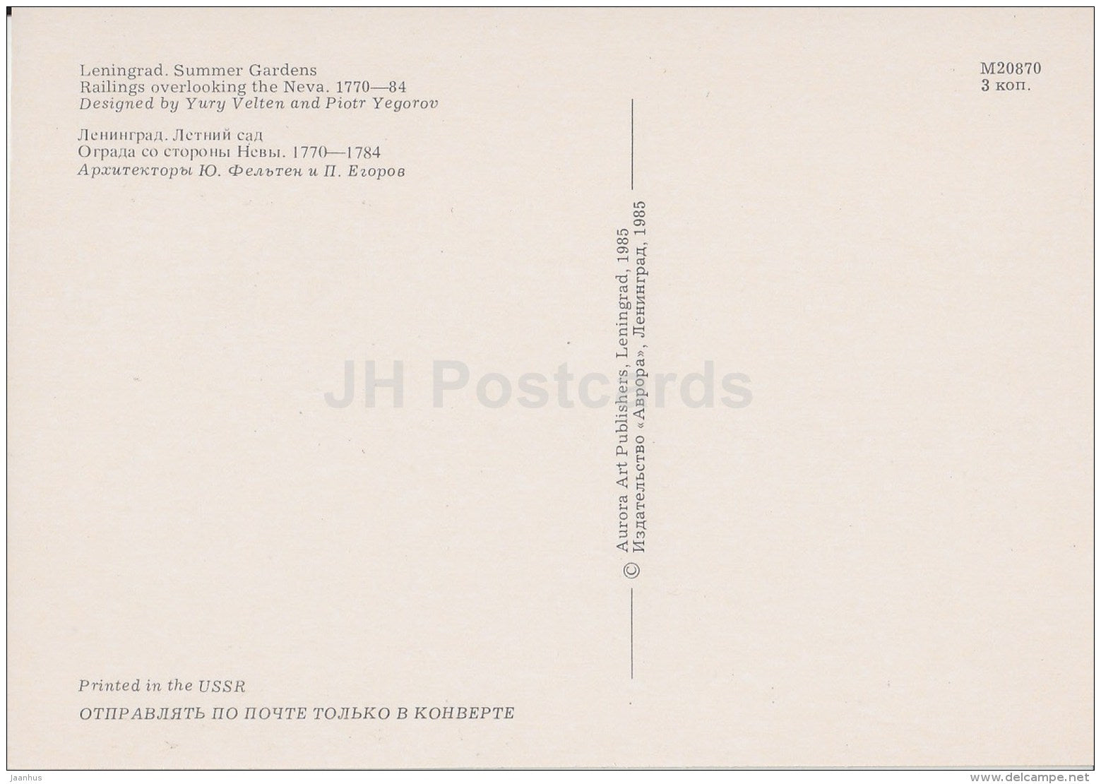 Railings overlooking the Neva - Summer Gardens - Leningrad - St. Petersburg - 1985 - Russia USSR - unused