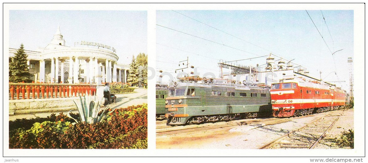 Railway station - locomotive - train - Mineralnye Vody - Russia USSR - 1986 - unused