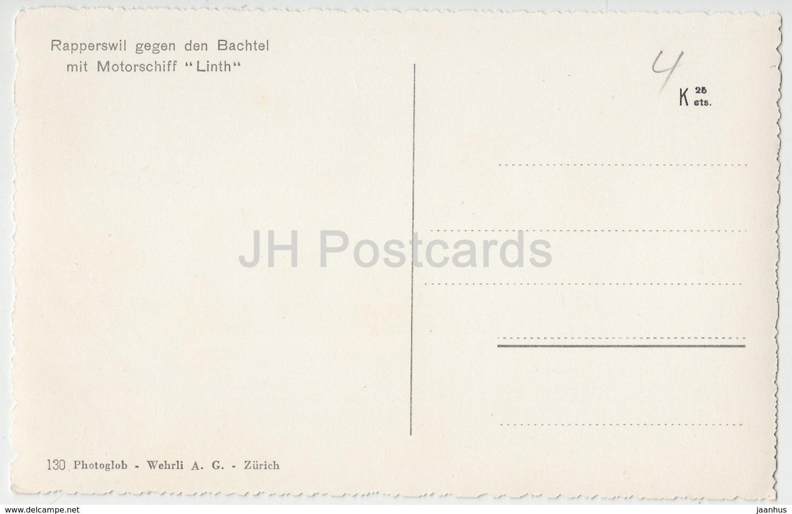 Rapperswil gegen den Bachtel mit Motorschiff Linth - ship - 130 - Switzerland - old postcard - unused