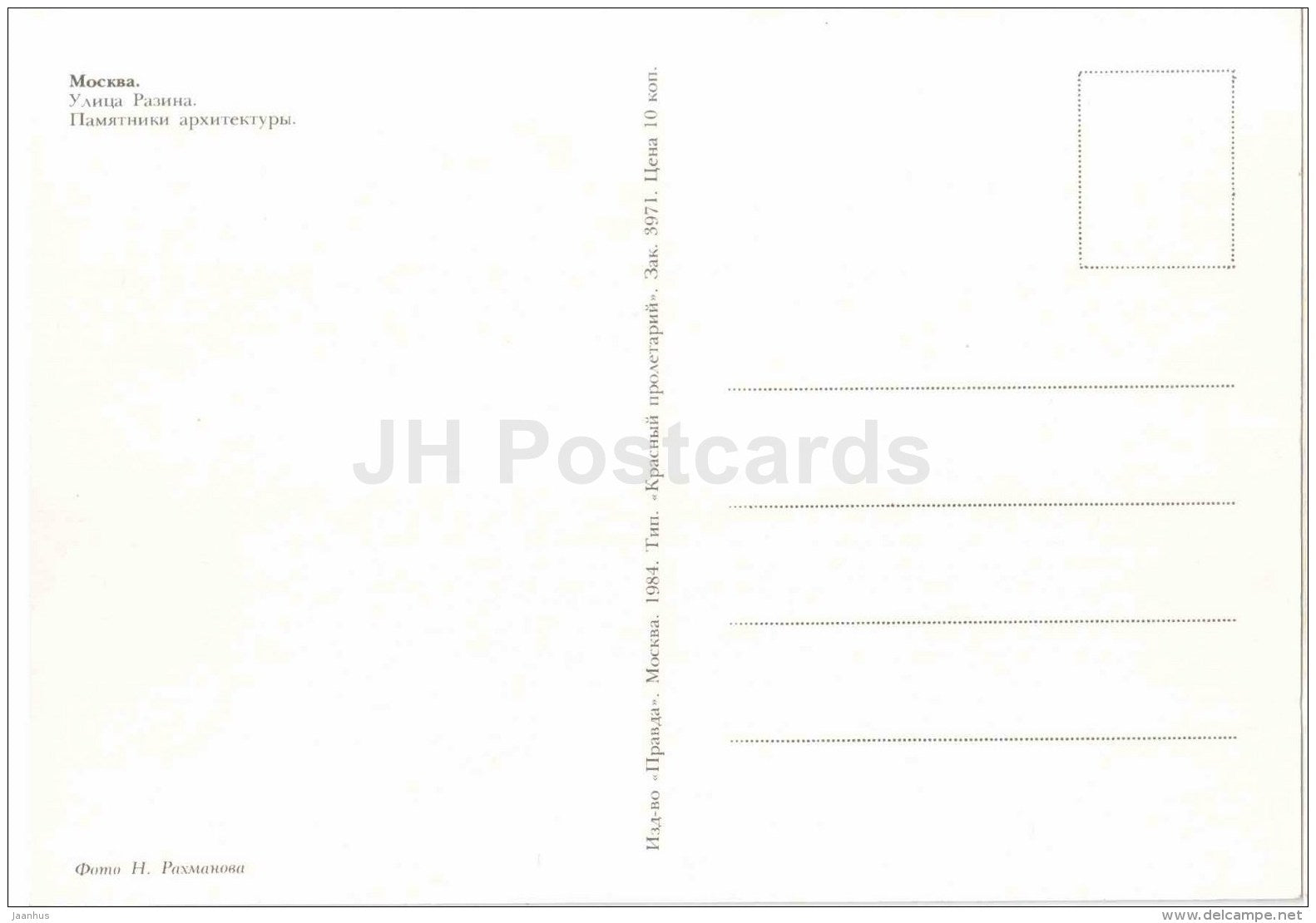 Razin street - architectural monument - Moscow - 1984 - Russia USSR - unused