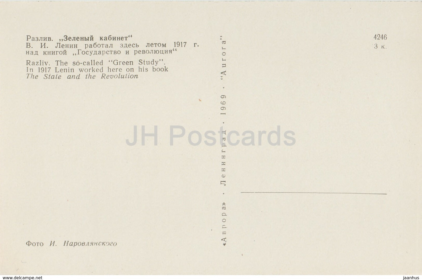 Razliv - Green Study - Lenin Memorial - 1969 - Russia USSR - unused