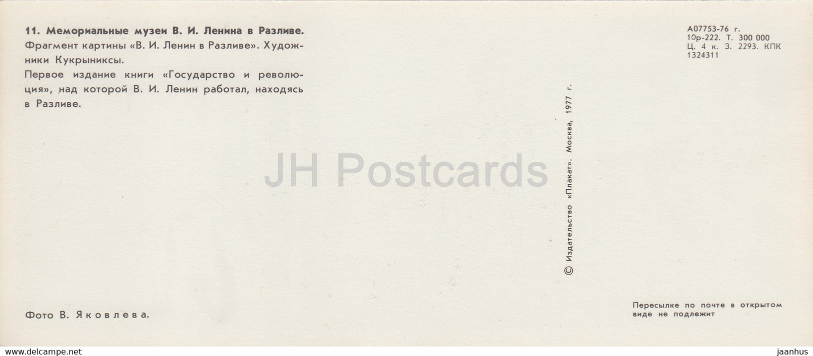Razliv - Lenin Museum - Lenin in Razliv by Kukryniksy - first edition State and Revolution - 1977 - Russia USSR - unused