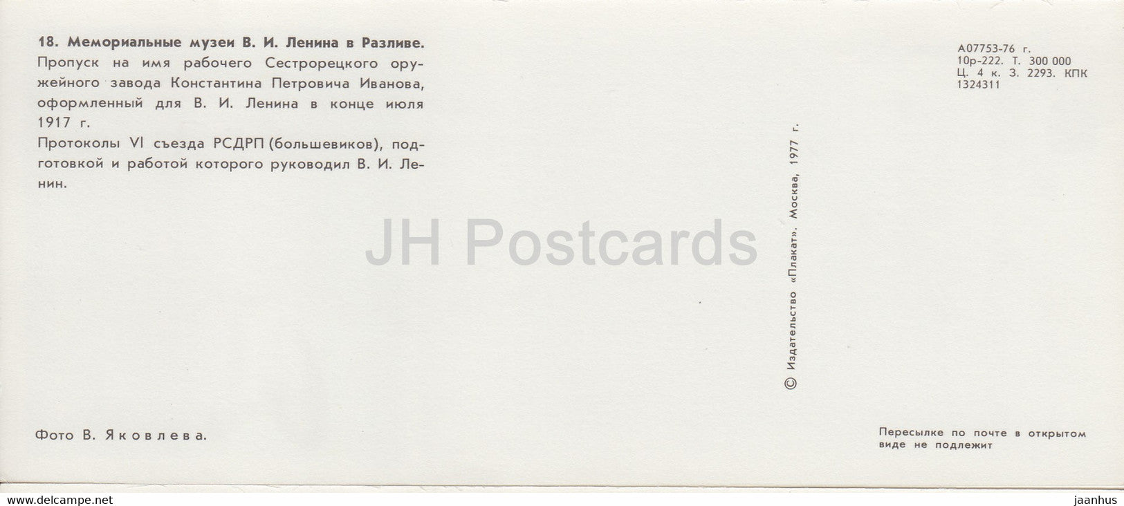 Razliv - Lenin Museum - Lenin pass - Congress Protocols - 1977 - Russia USSR - unused