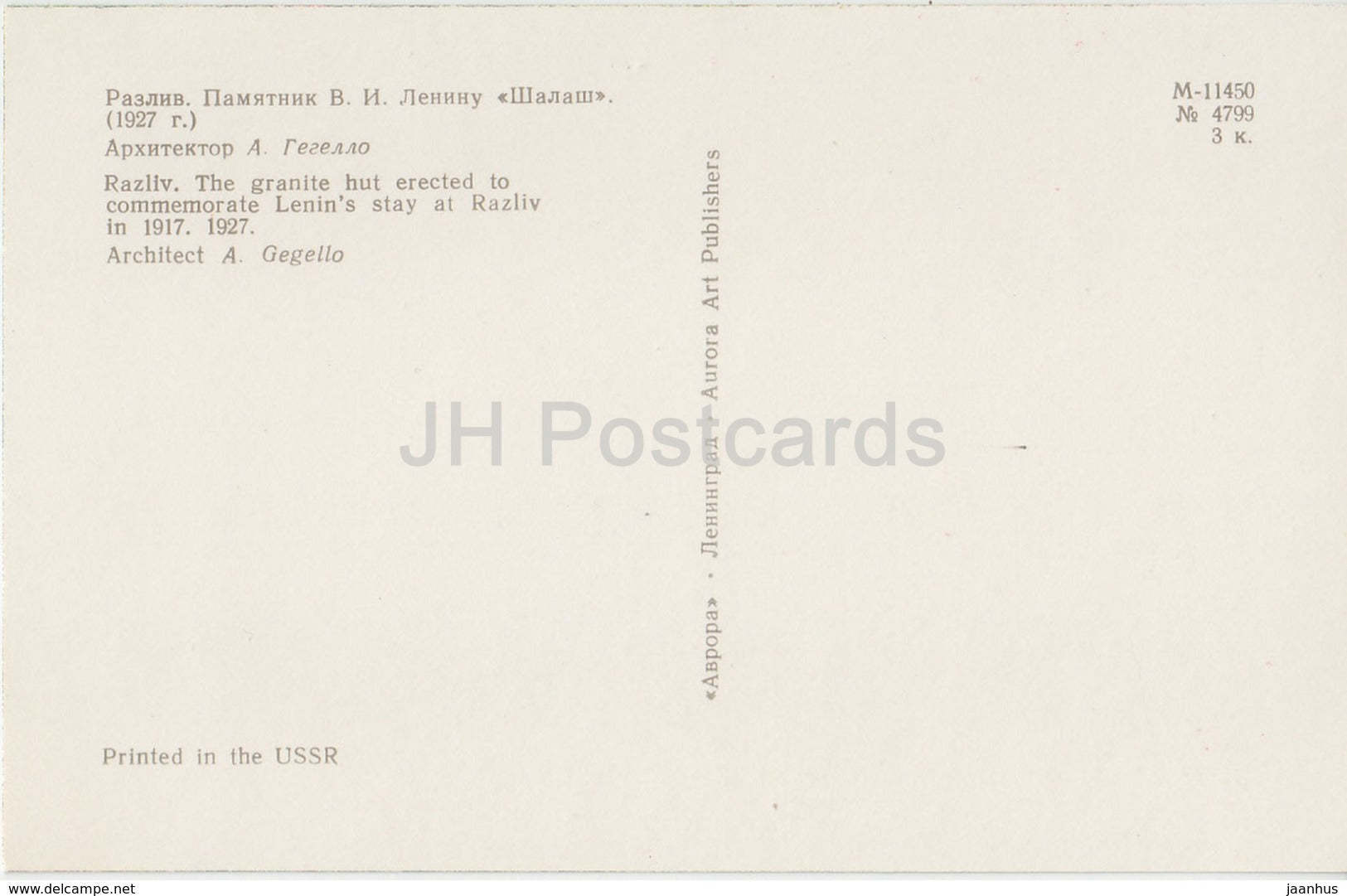 Razliv - The Granite Hut - Lenin Memorial - 1970 - Russia USSR - unused