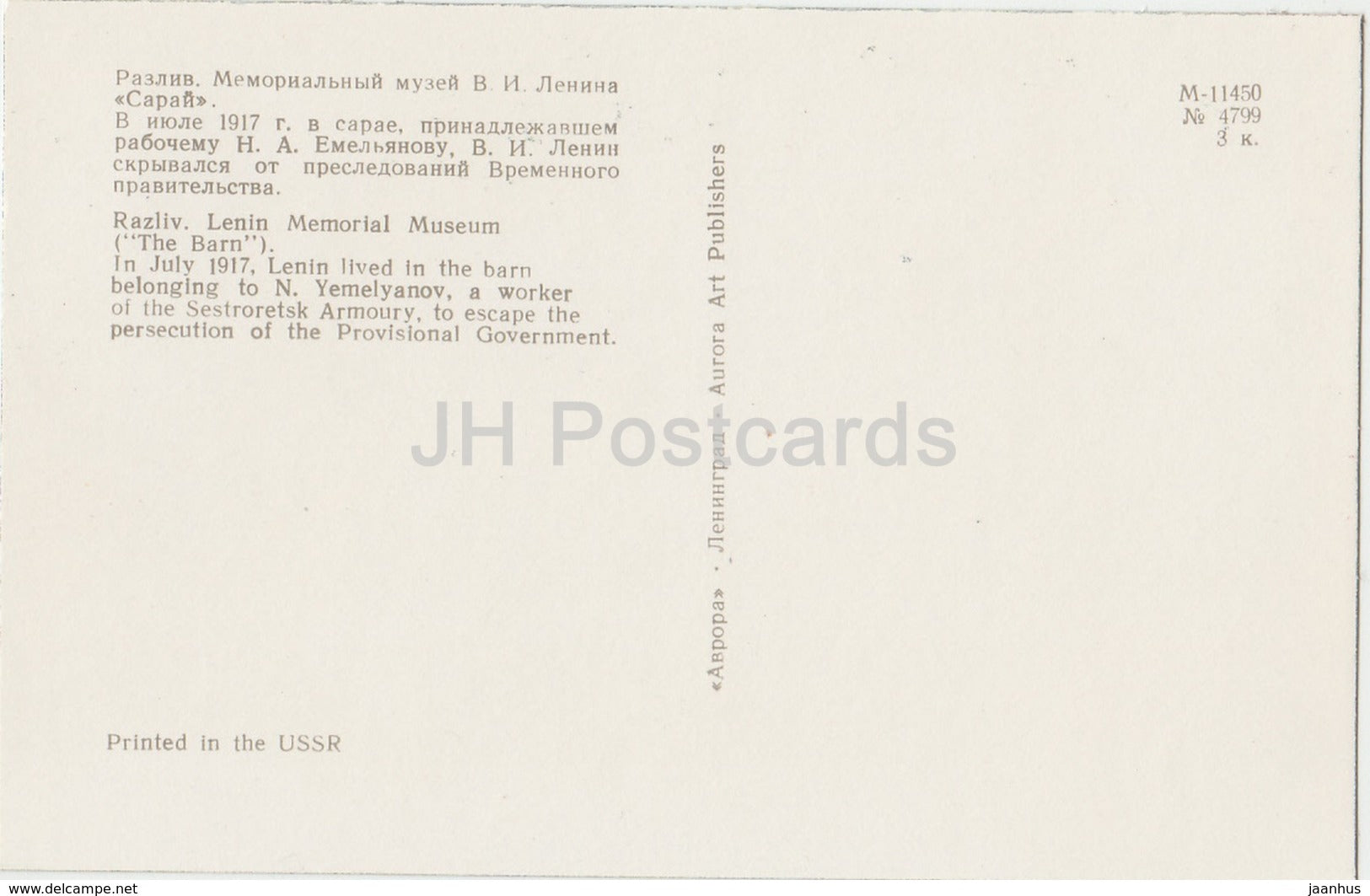 Razliv - The Yemelyanov's Barn - Lenin Memorial - 1970 - Russia USSR - unused