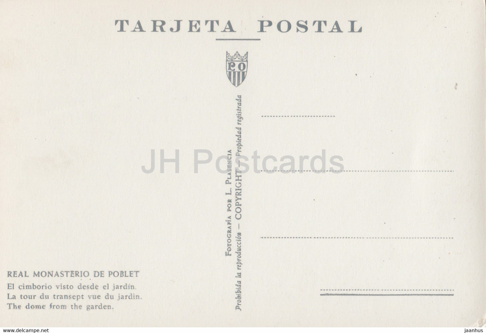 Real Monasterio de Poblet - El cimborio visto desde el jardin - The Dome from the Garden - old postcard - Spain - unused