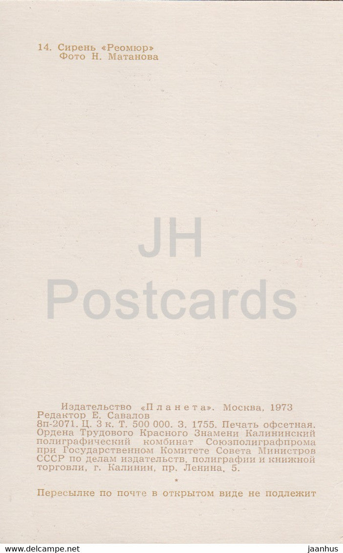 Reaumur - Lilac - Flowers - 1973 - Russia USSR - unused