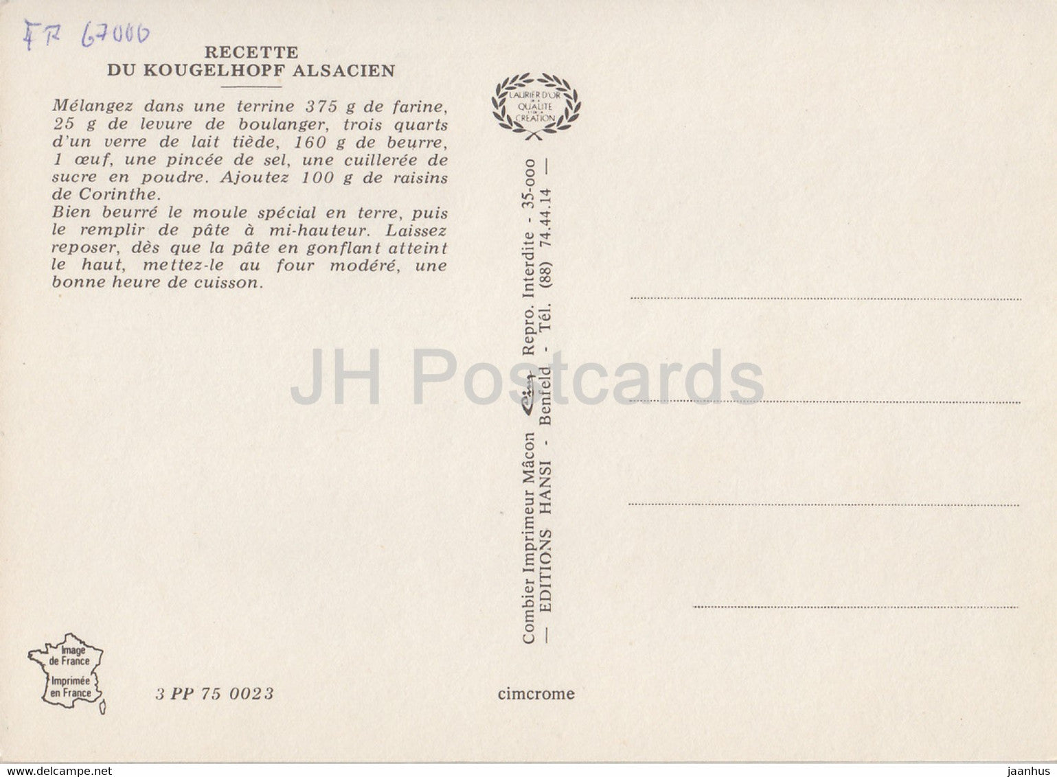 Recette du Kougelhopf Alsacien - folk costumes - France - unused