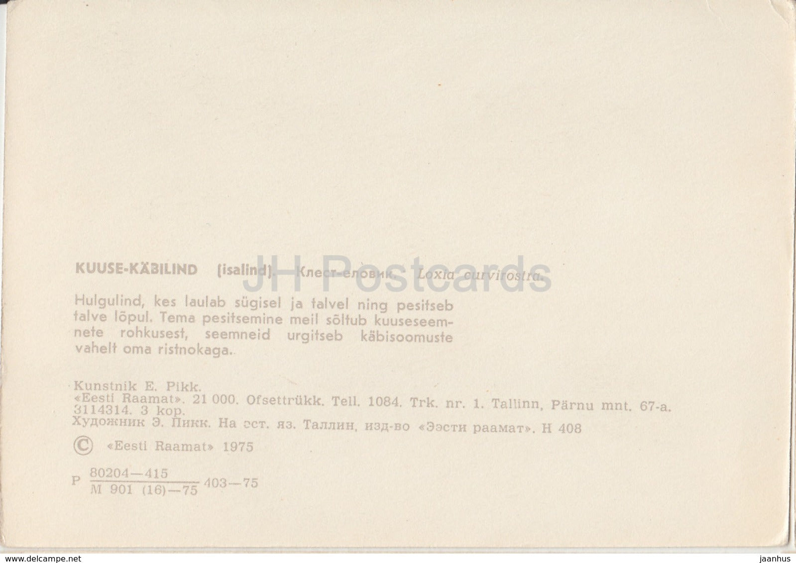 Red crossbill - Loxia curvirostra - birds - illustration by E. Pikk - 1975 - Estonia USSR - unused