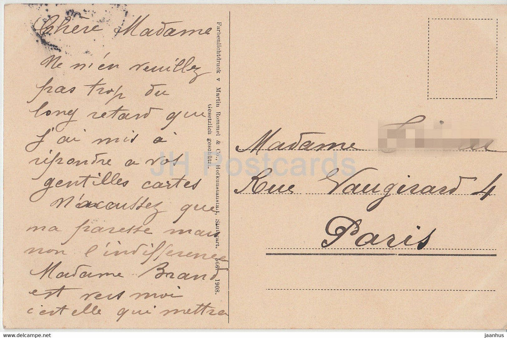 red flowers - Bonne Fete - Martin Rommel - old postcard - Germany - used