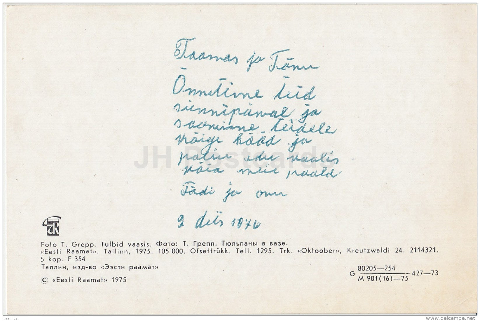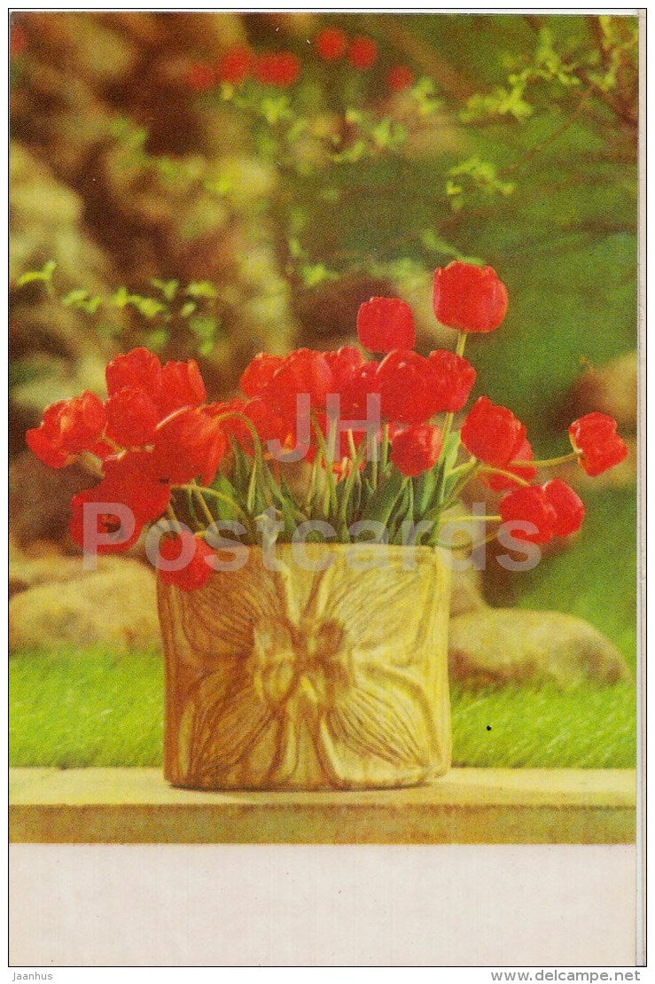 Red tulips in a vase - flowers - 1975 - Estonia USSR - used