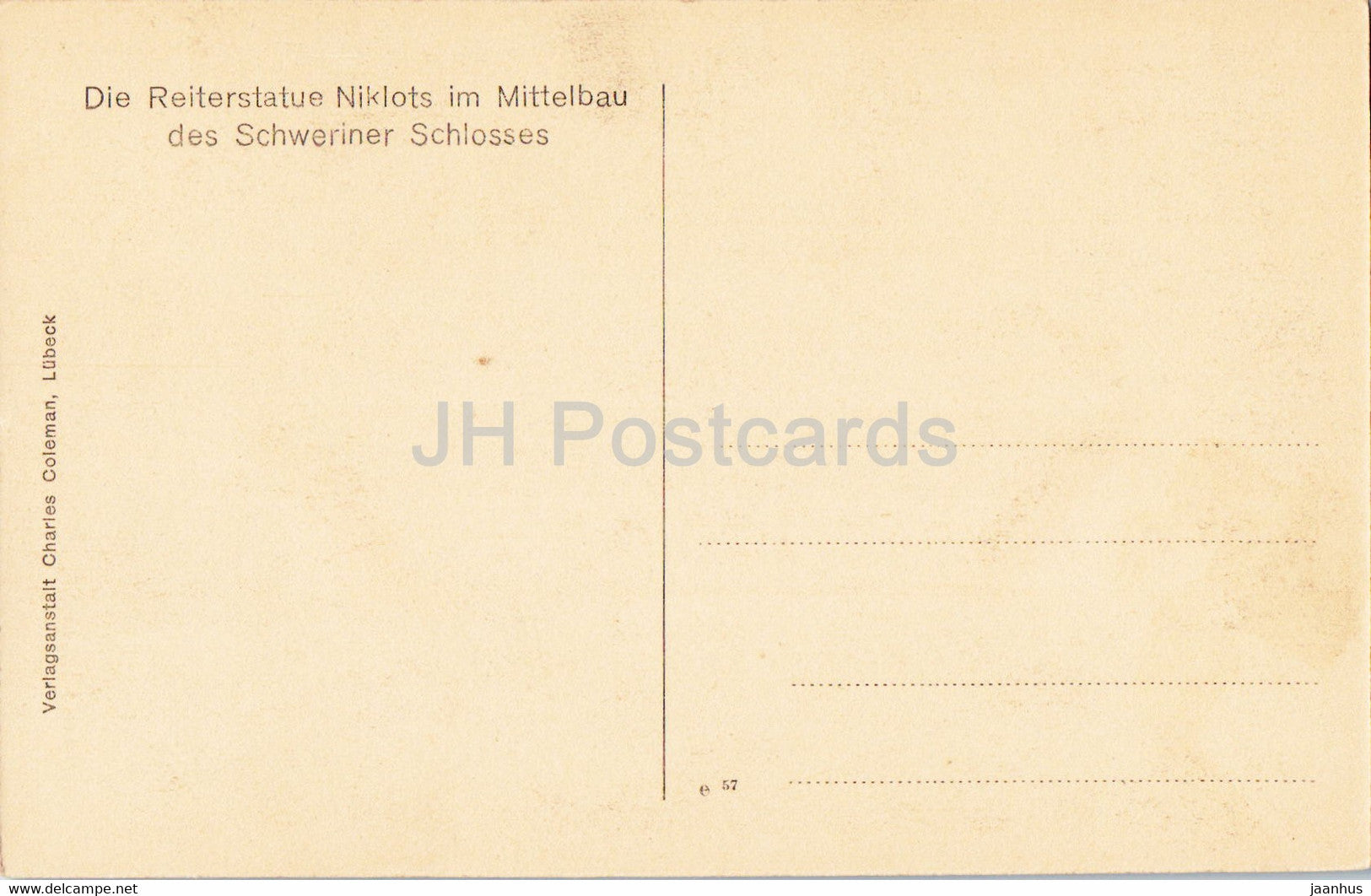 Reiterstatue Niklots im Mittelbau des Schweriner Schlosses - monument - horse - castle - old postcard - Germany - unused