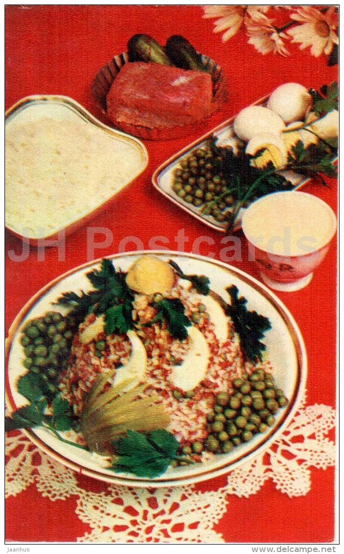 rice salad - eggs - Ocean Gifts - dishes - cuisine - 1981 - Russia USSR - unused