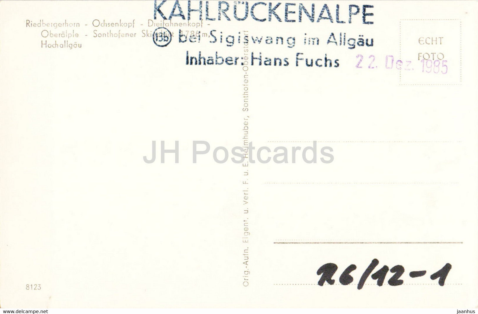 Riedbergerhorn - Ochsenkopf - Dreifahnenkopf - Oberalpe - 8123 - old postcard - Germany - used