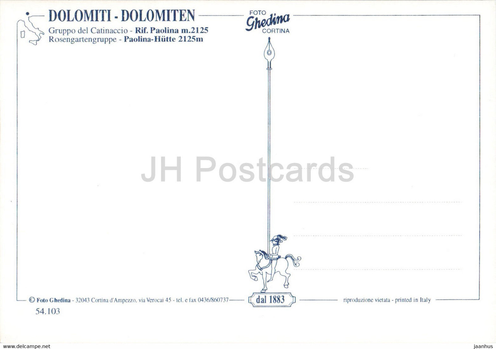 Rif Paolina - Gruppo del Catinaccio - Paolina Hutte - Rosengartengruppe - Italy - unused