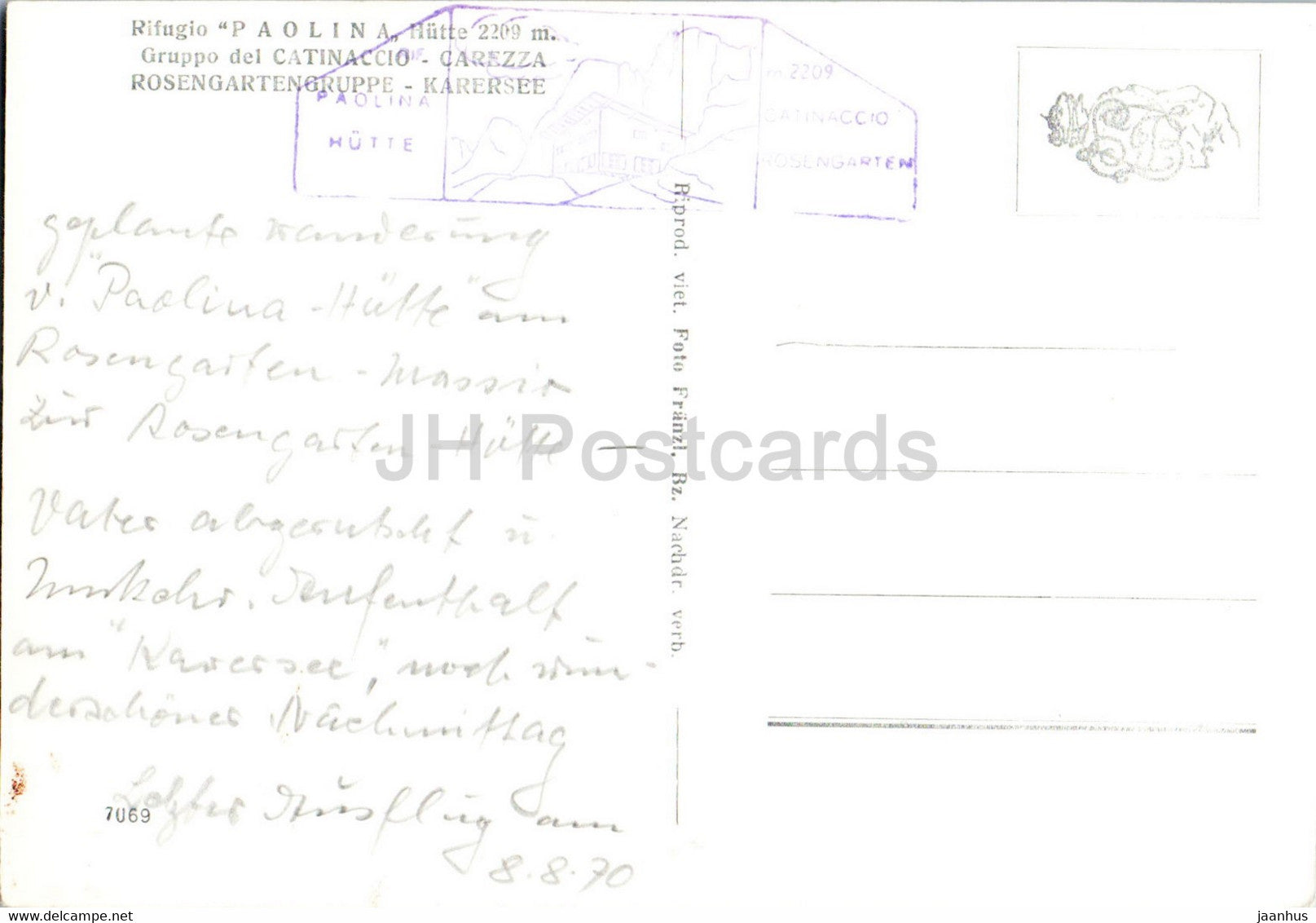 Rifugio Paolina 2209 m - Gruppo del Catinaccio - Carezza - Rosengartengruppe - Karersee - old postcard - Italy - used