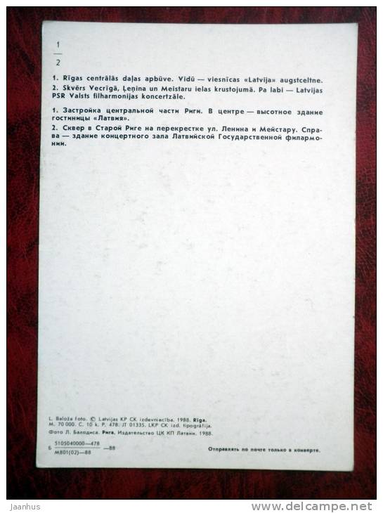 Riga - hotel Latvia, concert hall - 1988 - Latvia - USSR - unused