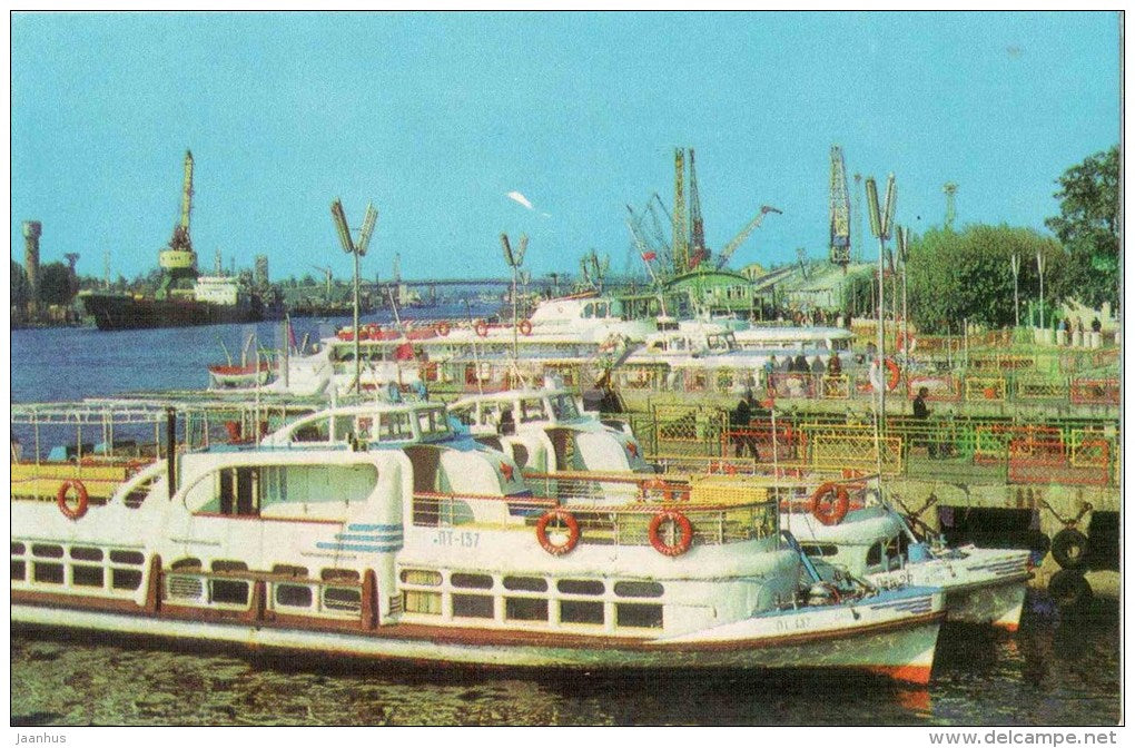 river port - passenger boat - crane - Kherson - Herson - 1977 - Ukraine USSR - unused