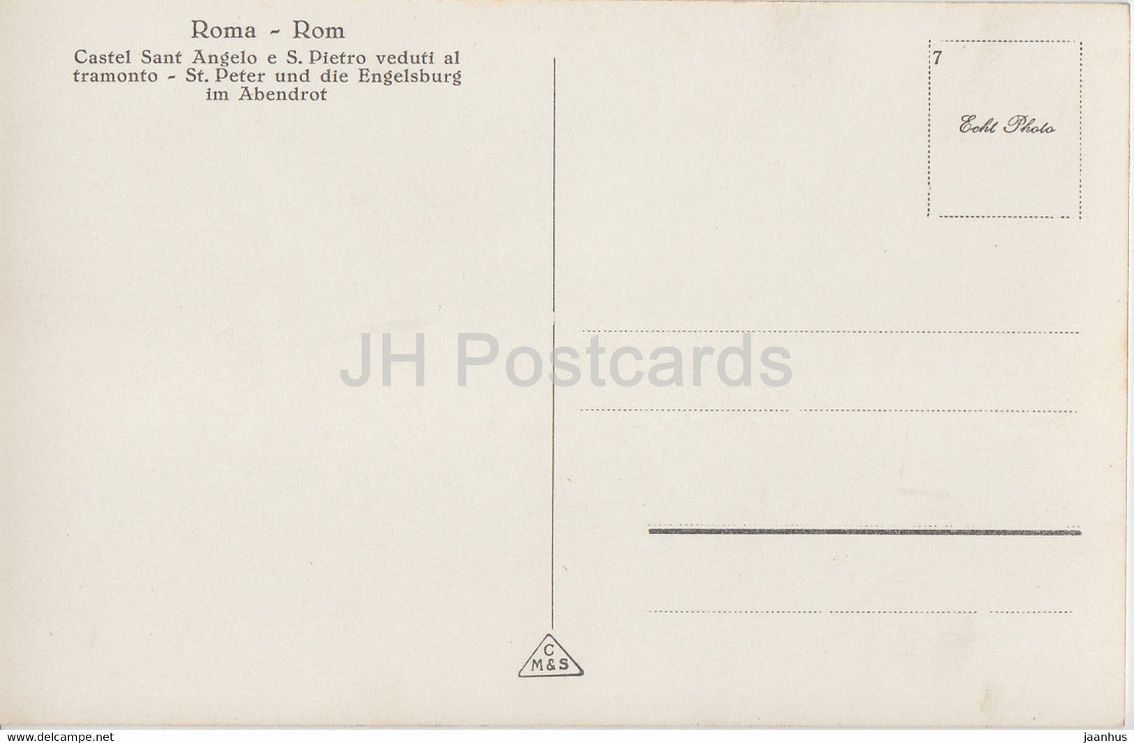 Roma - Rome - Castel Sant Angelo e S Pietro veduti al tramonto - 902 - old postcard - Italy - unused