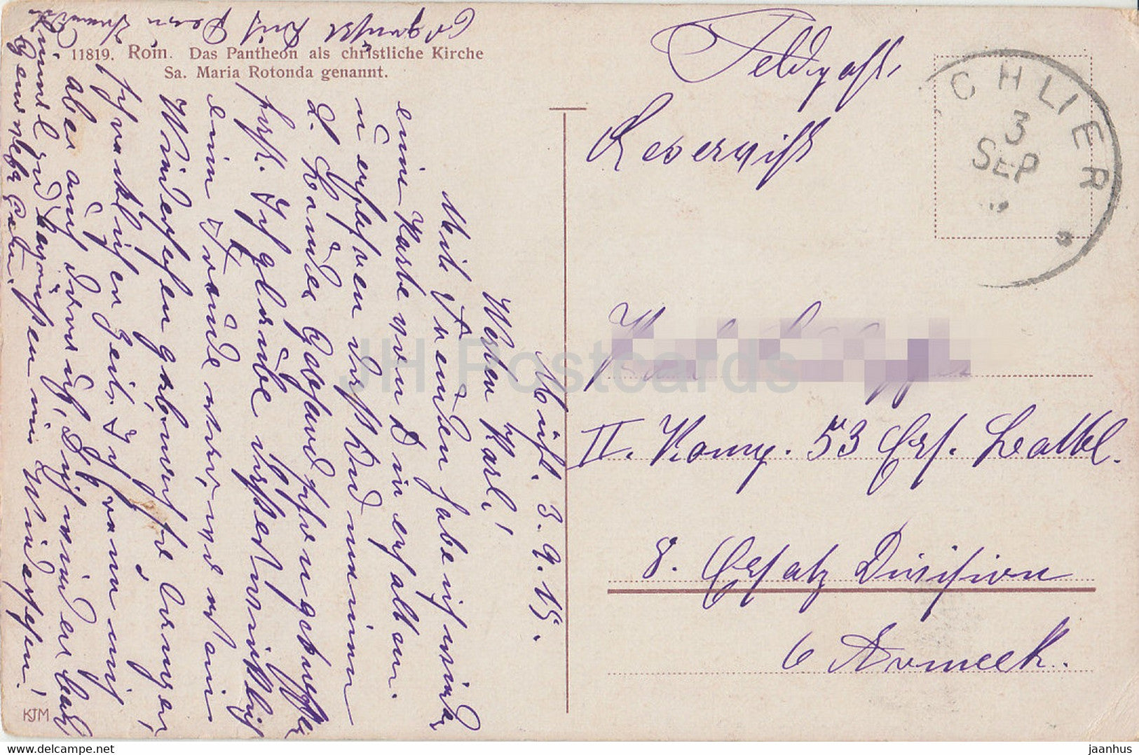 Roma - Rome - Das Pantheon als Christliche Kirche Sa Maria Rotonda genannt - old postcard - 1919 - Italy - used