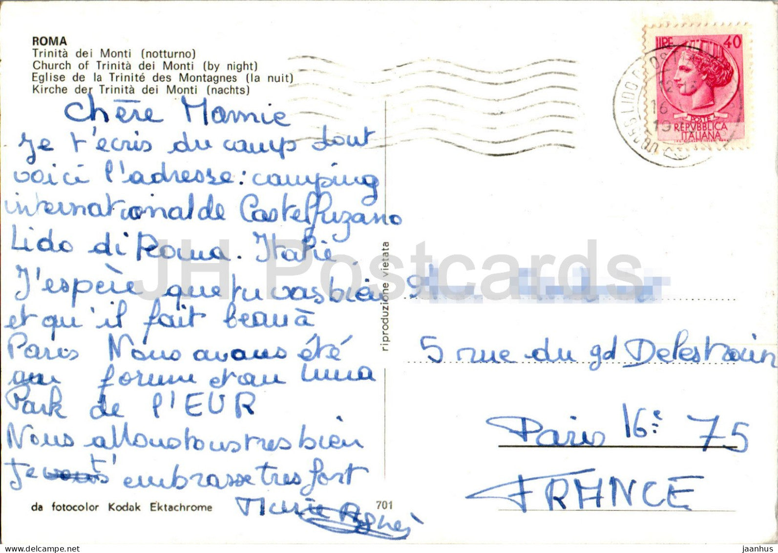 Roma - Rome - Trinita dei Monti - notturno - Church of Trinita dei Monti by night - 701 - 1970 - Italy - used