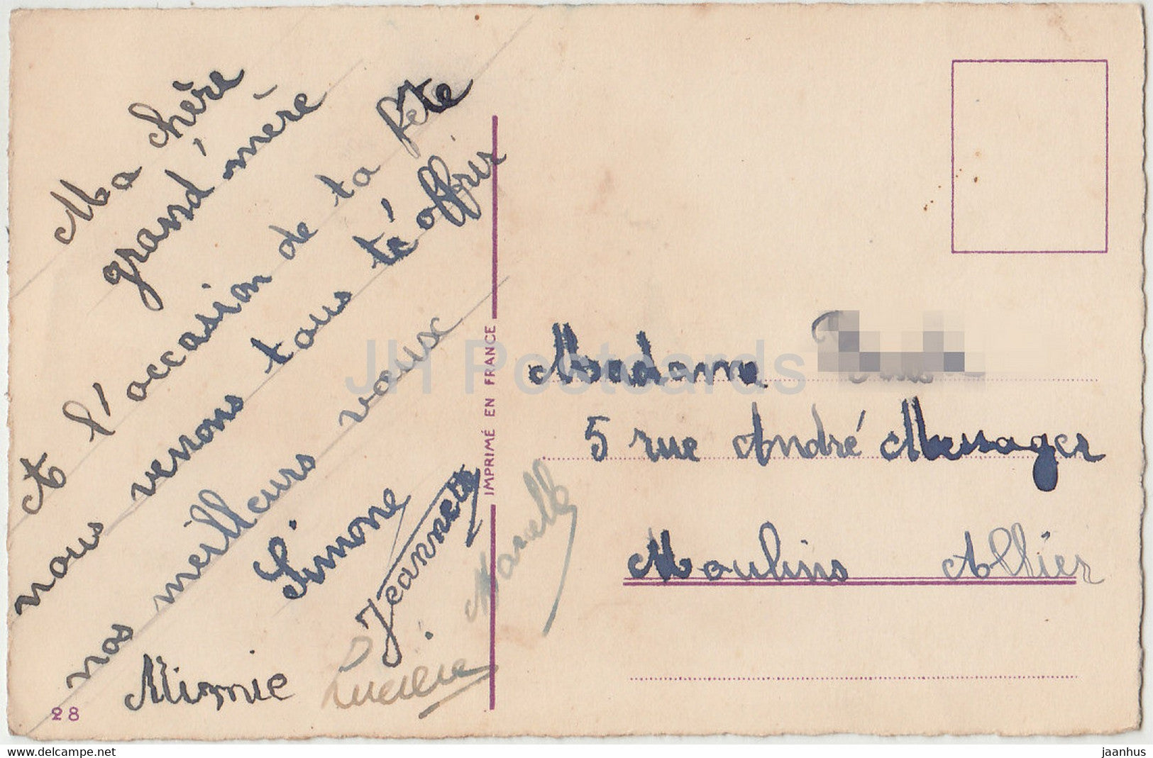 roses in a vase - flowers - 28 - illustration - old postcard - France - used